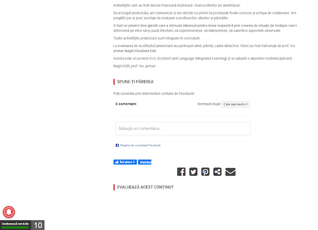 A fost un proiect bine gândit care a stimulat interesul pentru tema respectivă prin crearea de situaţii de învăţare care-i determină pe elevi să-şi pună întrebări, să experimenteze, să interpreteze, să valorifice aspectele observate.